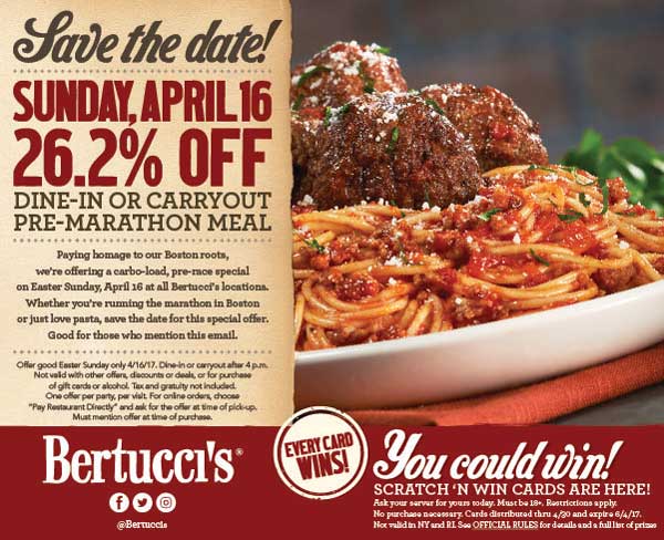 26% off the 16th at Bertuccis restaurants