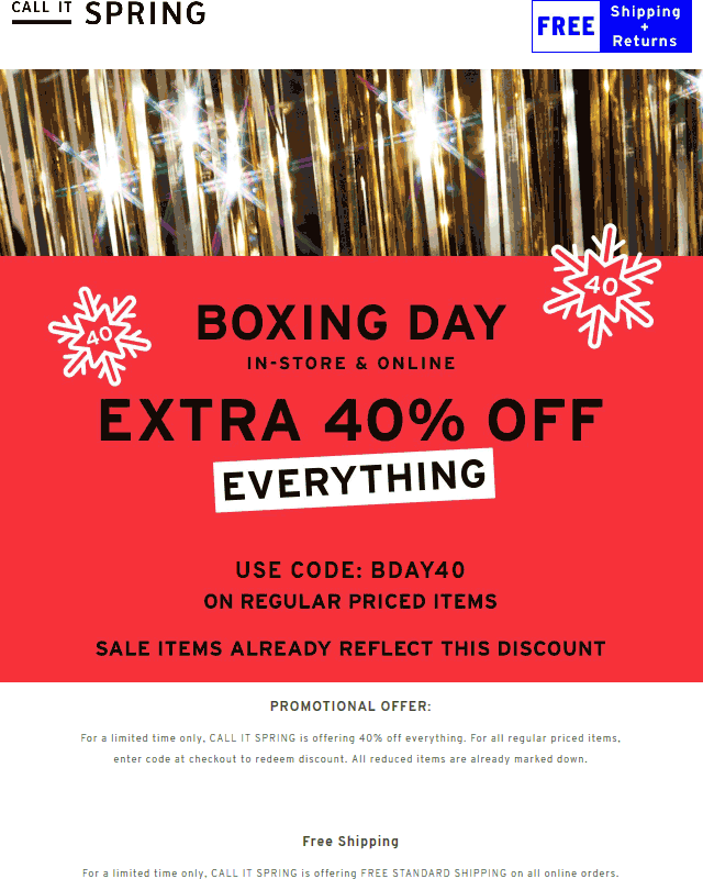 40% off everything at Call It Spring, or online via promo code BDAY40