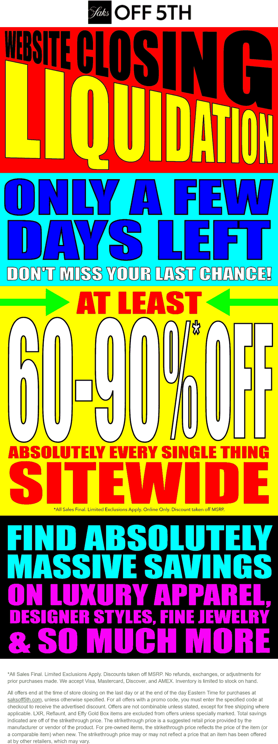 Website shutdown 60-90% off everything online at Saks OFF 5TH
