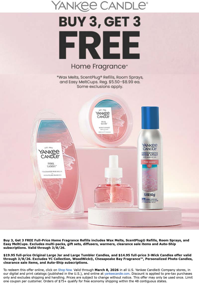 6-for-3 on home fragrance at Yankee Candle