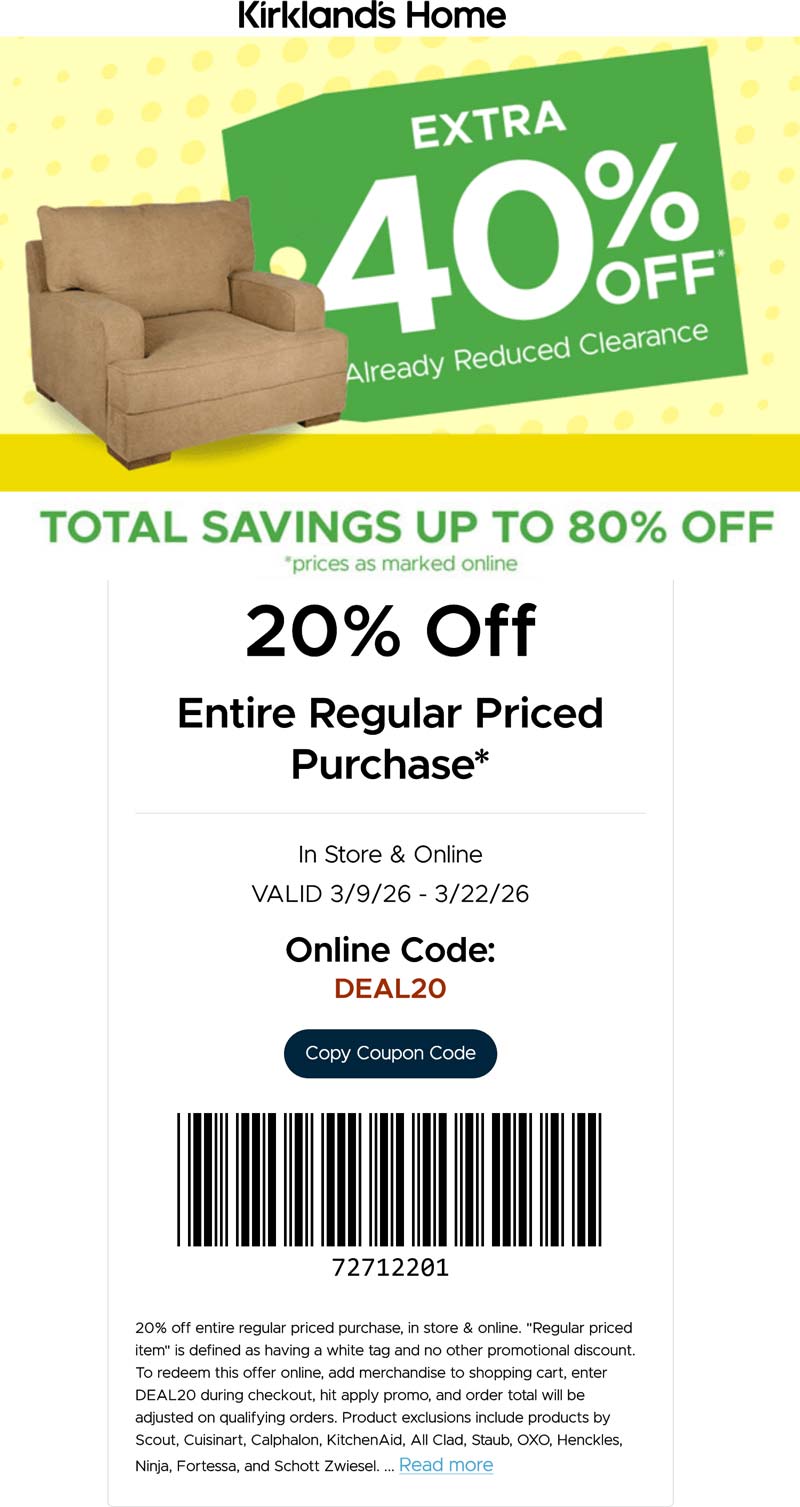 Kirklands Coupons & Promo Codes for March 2026