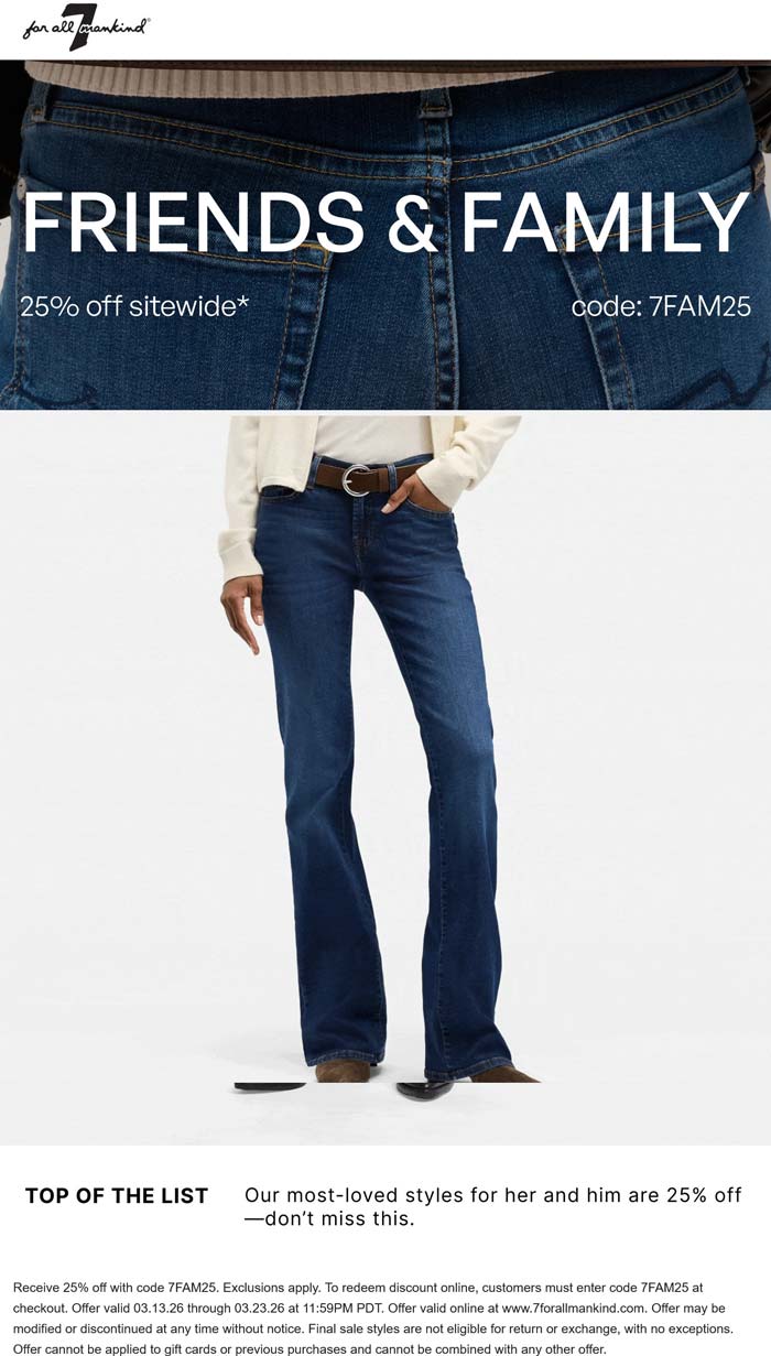 25% off everything at 7 for All Mankind via promo code 7FAM25