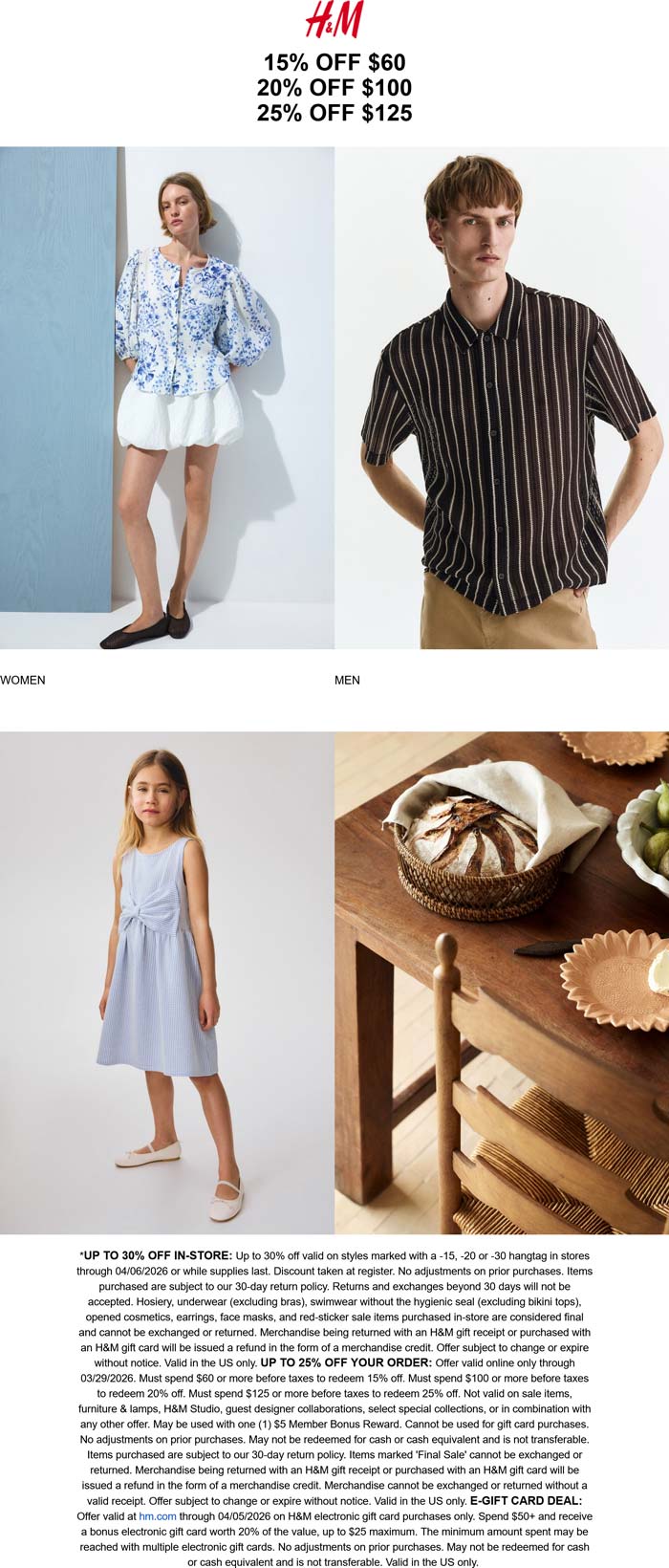 15-25% off $60+ online at H&M