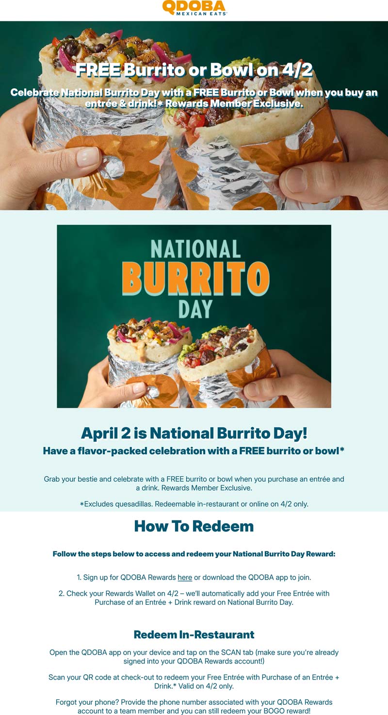 Second burrito or bowl free Thurs at Qdoba