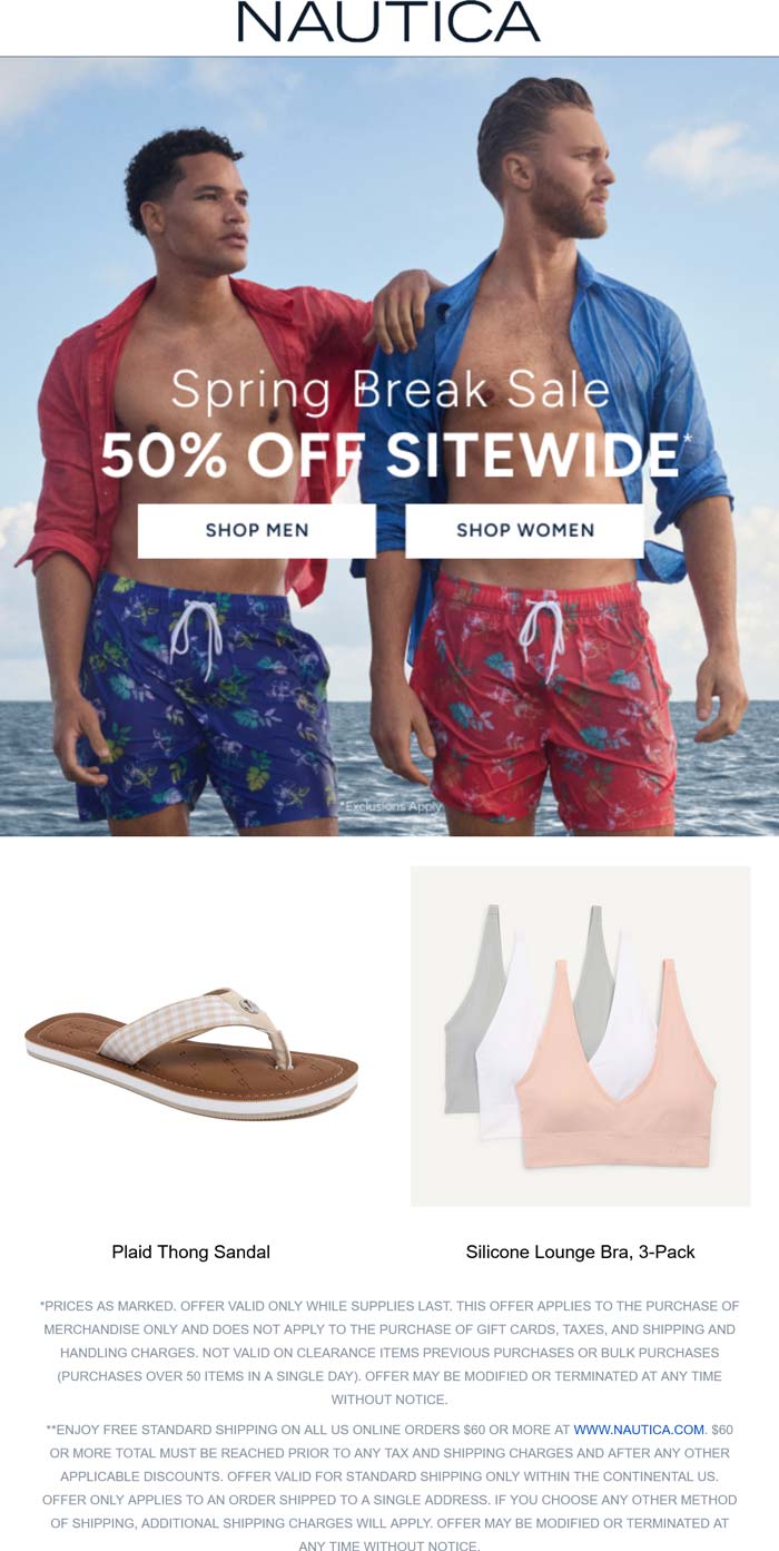50% off everything online at Nautica