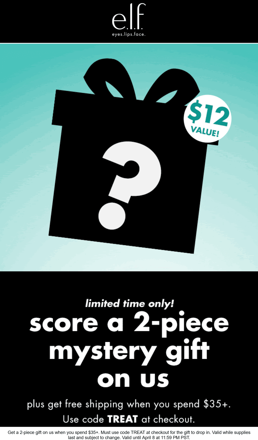 Free 2-piece on $35 today at e.l.f. Cosmetics via promo code TREAT